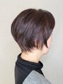 ショートレイヤー。襟足はタイトにスッキリさせ、後頭部は丸く、サイドは小顔効果のある長さに設定。イノアカラー施術。
