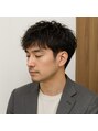 ゆるめのパーマで自然な動きと抜け感を演出。ツーブロックで清潔感を保ちつつ、大人らしい柔らかな印象に。ビジネスにもカジュアルにもマッチする万能スタイルです。