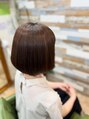 ウルティア縮毛矯正、ポイントカット、シャンプーブロー。うねりはそこまでなく、広がるクセに合わせて、酸性処方の薬剤で、柔らか縮毛矯正。