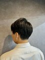 耳周りと襟足はハサミでスッキリさせ、トップは長さを残しつつ毛流れが出やすいようにカットさせて頂きました!ドライヤーで前髪を上げてからオイルを全体に馴染ませるだけで、程よいツヤ感が出るのでスーツにも合うスタイルです!