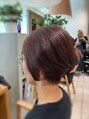 乾かすだけで決まるショートボブドライカットで乾かしただけで綺麗なシルエットになるスタイルです!ヘアカラーは秋におすすめのピンクブラウンカラーです!季節の変わり目に変化が欲しい方はおすすめのヘアカラーになります!