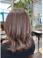 全体に細かくハイライトを入れて、上から馴染みのいいベージュ系のカラーをかぶせることで派手すぎない仕上がりにしました