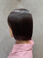 肩につく長さの長めのボブ。レイヤーを入れてふんわり感が出やすいようにカット。前髪とサイドバングを作り、分け目とこめかみ周りをカバーしました。お色は赤みを抑えた柔らかいアッシュグレージュ。