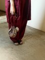 ワンレンボブにボルドーとオレンジをミックスしたヘアカラーとくるくるパーマの組み合わせです。お客様の相棒、パオぞうくんと添えて笑 髪質によっって、カットとカラーとパーマの同時施術可能なので相談したい方はメニューであらかじめご選択下さい。