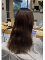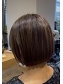 ロングからボブに。お顔の形で前髪とサイドバングを似合わせます。軽さを出しつつもまとまりやすい、朝が楽なスタイルです。カラーは以前のダブルカラーを活かしてベージュ系グラデーションに。コントラストでボブに立体感を出しています。