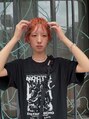 ベリーショートのパーマにダブルカラーでデザインを効かせたスタイル。温かみあるオレンジブラウンで攻めの中にも柔らかさのあるデザインが◎