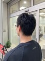 しっかり直毛さんなので、しっかりめにかけたパーマをアフターカットで調整。短めの前髪で爽やかな印象に。ジェルバームで束を出しながらセット!