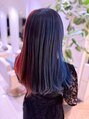 根元が伸びても気にならない地毛×ハイライト ブルー×レッド/ホットペッパービューティー