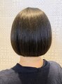 襟足ぎりぎりの前下がりのボブスタイルです。ワンレングスのラインは、上を向いても下を向いてもいつも綺麗なラインでいられます。ナチュラルドライでOKです。クセ毛の方はストレートアイロンで表面だけかけてあげるとまとまりやすいです。