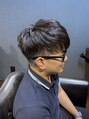サイドと襟足をすっきり刈り上げ、トップから前髪へ自然に繋がる前下がりシルエット。一見シンプルながら、横顔にさりげないモード感が漂うデザイン。分け目をつけずにおろした前髪が堅苦しさを消しつつスマートな印象を与えます。おしゃれビジネスマンに◎