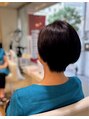 襟足のスッキリしたショートボブスタイル前髪が長めなので、下ろした時と耳掛けスタイルで印象を変えれて楽しめます