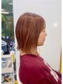 切りっぱなしボブに、前回のブリーチで明るくなった所を活かして、ミルクティーベージュにピンクを入れたカラー。ブリーチならではの透明感。前髪はシースルーにして耳にかけた時も、小顔に見えます。気分に合わせて、ストレート、カールを楽しんでください。