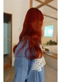 濃いめのベージュのベースから、ワンカラーでしっかり色味のわかるオレンジカラーに!少しだけ赤をいれる事で個性を出して、周りとは少し違った感じのオレンジに^^