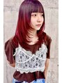 深みのあるベリーワインカラーがベースのグラデーションカラーに、顔まわりを包み込むようなレイヤーをプラス。甘さと大人っぽさを両立したおすすめのスタイル。ナチュラルにも、モードにもハマります