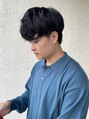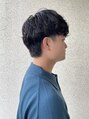 くせ毛ぽくなるように緩めにパーマをかけました。下ろすとマッシュパーマに、前髪を上げると毛流れパーマぽくなるように。オイルや、ツヤの出るワックスでのスタイリングがオススメです◎