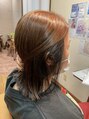 切りっぱなしボブスタイルで、ブリーチなしのアンブレラカラーです。