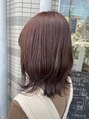 ピンクベージュくびれミディアムレイヤー顔まわり前髪群馬太田