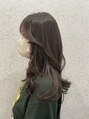 人気の韓国風ヘアスタイル×レイヤーミデイアムです。とても今っぽく動きと軽さがでる人気のデザインです。全体にレイヤーがを入れて毛先に動きが出やすいようになっています。外ハネと内巻きをMiXさせたヨシンモリ風カール。