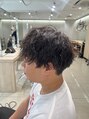 カットパーマ/ダウンパーマフェザーパーマ グレー ブルーカラー 刈り上げショート眉カット
