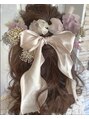 リボン×ドライフラワーハーフアップ/フェミニン/ミディアムヘア