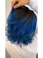 ネイビーブルーグラデーション/切りっぱなしボブブリーチ/透明感/ホットペッパービューティー