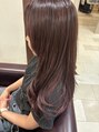 毛先は以前のブリーチが残っているのでグラデーションで、より透け感のあるピンクベージュに仕上がりました。顔周りレイヤー。イルミナカラーの暖色系で艶感のあるカラーに。