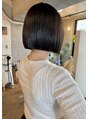 気に入ったスタイルはブックマークをしていただくと便利です】カットはライン感のあるコンパクトな切りっぱなしボブ。地毛風ストレートでナチュラルに癖の広がりを解決。乾かしただけでキマるお手入れ簡単ヘア。[薬院/警固][髪質改善]