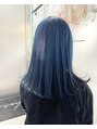 1回から2回のブリーチで作る 表面ブルーカラーです。韓国風なスタイルなどが好きな方ににおすすめのカラーです。