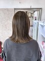 全体にハイライトが入った白髪ぼかしカラーになります。カットは切りっぱなし感をだし毛先の厚みのある外ハネスタイルに。