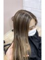 - ハイライトカラー(ブリーチ1~2回必須)全体にハイライトを入れてあげてるので明るい仕上がりになります!
