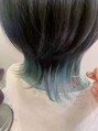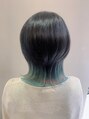 軽めのウルフカット。インナーをしっかりケアブリーチで抜いて、スモーキーグリーンを入れました(EARTH恵比寿)