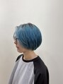 ブリーチ履歴を生かし、ライトブルーのハイトーンスタイル。カットはメンズっぽくなりすぎないようにマニッシュなショートスタイル。ブリーチで一度ベースを作ればいろいろなカラーを楽しめます。