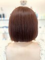 今季トレンドの暖色系カラー オレンジブラウン。光に当たると輝くような艶感を引き出し肌を明るく見せる血色up効果も抜群です!毛先の絶妙な長さは肩についてハネても可愛いニュアンスに。乾かすだけで内巻きにまとまりやすく朝のスタイリングも超時短。