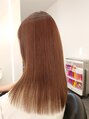 ベースはサラサラのストレートロングです。落ち着いたベージュ系カラーです。仕上げはコテ巻きウェーブです。