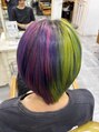 ピンク×バイオレット・ブルー×イエローグリーンでハイライトで組み合わせたデザインカラー!