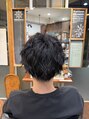 膨らみやすい髪の毛でしたが、ちゃんと抑えられるようにコントロール。硬い髪の毛も予め薬剤反応をさせることで、放置時間とダメージを少なくパーマをかけることができます。