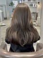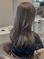 明るめの透明感グレージュカラーです。ベースが暗い方はブリーチなしで明るくして2回目のカラーで透明感を出していくダブルカラーがおすすめです。