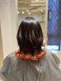 毛先にかけて秋らしいカラーで染めてます♪暖色系でもオレンジは人気です!