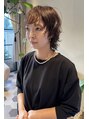 レイヤーを効かせたウルフパーマに、まろやかなベージュカラーをオン。抜け感の中にモードな雰囲気を。ハーブトリートメントと炭酸スパで上質なツヤをプラス。
