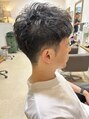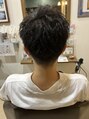 サイドとバックは刈り上げトップは前髪にかけて少し長めに設定。パーマはピンパーマをねじりで束感を強めに。
