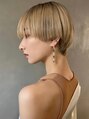 ブラントカットでラインがしっかり出るマッシュショート。前髪を長めに設定する事で大人っぽい印象に仕上げました。カラーはブロンドベージュでトーンアップ♪