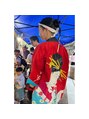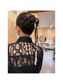 持参していたリボンを使って。結婚式→お祭りのハードスケジュールな彼女に崩れずらく、個性のあるタイトアレンジ。