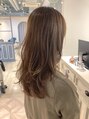 赤みを抑えたベージュブラウンが肌なじみ抜群のロングスタイル。顔まわりにレイヤーを入れ、ゆる巻きで柔らかな動きをプラス。透明感と抜け感を両立し、大人っぽさと軽やかさを演出します。巻きすぎない自然な質感が魅力。