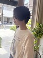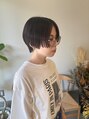 前髪とサイドの繋ぎ目を丸くしたり、角を残したりで優しいカジュアルにもクールなモードの雰囲気にもなるショート。【京都美容室/二条/大宮/西院/ショート/ボブ/ハイライト/白髪ぼかし/レイヤー/ヘッドスパ/プライベートサロン】
