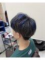 ダークシルバーに青メッシュを入れさせていただきました。寒色系カラーをよりカッコよくクールに。メッシュの量は調整可能ですのでお気軽にご相談ください。