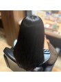 伸ばし途中の長さもトリートメントでツヤツヤに。