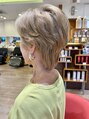大人40代オススメ丸み高めハイトーン白髪ぼかしショート/ホットペッパービューティー