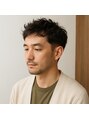 くせ毛の柔らかな動きを活かしたナチュラルビジネスショート。サイドをすっきり刈り上げ、落ち着きと優しさを感じる印象に。