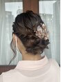 10月の結婚式におすすめの「お呼ばれヘアスタイル」首元でまとめる上品なヘアスタイル。