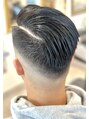 サイドからバックにかけての2ブログラデをスキンフェード、左からのサイドスウェーにて仕上げさせて頂きました。